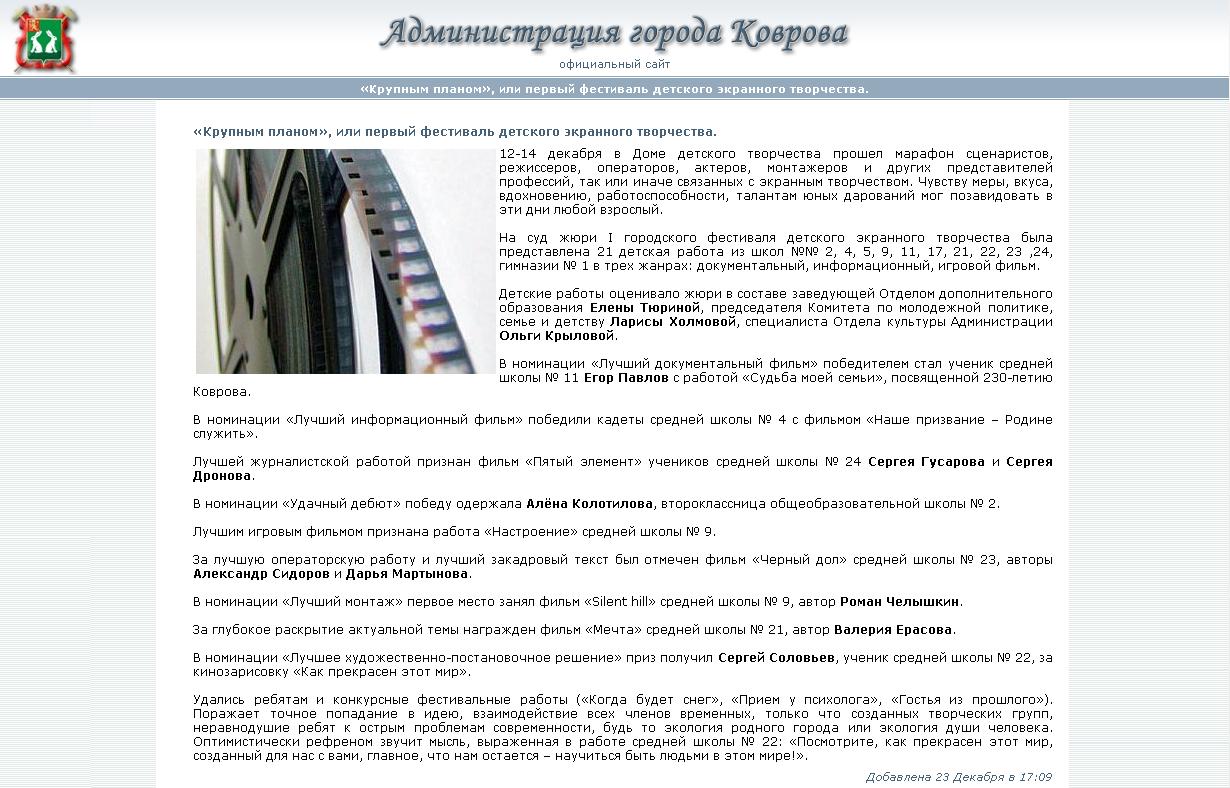 «Крупным планом», или первый фестиваль детского экранного творчества